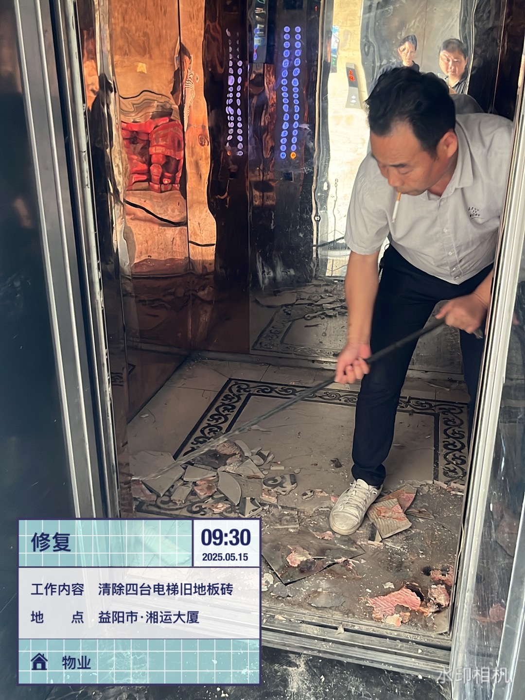 為優(yōu)化湘運(yùn)大廈公共設(shè)施,提升用戶(hù)出行安全性與舒適度。5月15日,湖南遠(yuǎn)程建設(shè)集團(tuán)有限公司物業(yè)部按經(jīng)理周琦順要求,對(duì)大廈內(nèi)電梯設(shè)施啟動(dòng)專(zhuān)項(xiàng)改造工程,對(duì)三臺(tái)客梯及一臺(tái)貨梯的陳舊底板進(jìn)行全面更換。改造前,在副經(jīng)理潘宇文與新裝酒店施工方商討對(duì)接后,確定由公司物業(yè)工程人員完成舊底板的拆除清理,由酒店方鋪設(shè)全新耐磨地板的方案,同時(shí)創(chuàng)新采用"半覆蓋木板"防護(hù)措施,有效降低裝修材料運(yùn)輸對(duì)地面的磨損。針對(duì)實(shí)施過(guò)程中樓內(nèi)裝修施工頻繁的情況,辦公室還特別強(qiáng)調(diào)在每部電梯新增半塊可拆卸木板,既保護(hù)新底板免受建材刮擦,又不影響日常使用便利性。(郭燦燦)