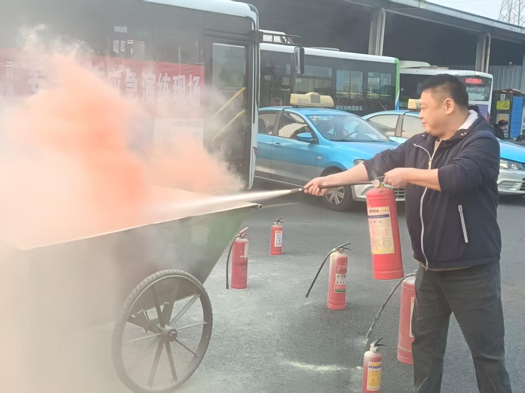演練模擬一輛正在站場待發(fā)的客運(yùn)班車因電路故障突發(fā)“起火”。駕駛員發(fā)現(xiàn)火情后立即停車斷電,開啟應(yīng)急車門,并高聲提醒乘客保持冷靜。乘務(wù)員迅速協(xié)助乘客有序撤離車輛。同時(shí),駕駛員取出車載滅火器對(duì)準(zhǔn)火源根部噴射,控制火勢蔓延。演練全程緊張有序,各環(huán)節(jié)銜接緊密。強(qiáng)化了員工對(duì)車輛火災(zāi)的快速響應(yīng)、乘客疏散及初期撲救能力。 (謝可明)